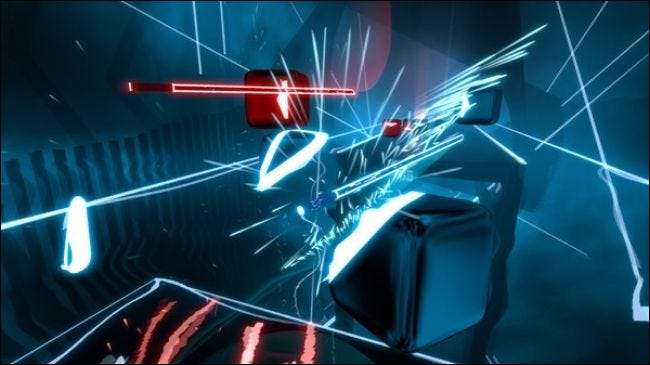Beat Saber est l'une de ces idées créatives qui semblent si évidentes une fois que cela est fait, mais ne se produirait jamais à la plupart des gens. Beat Saber est similaire au jeu de rythme 2016 Audioshield , où les joueurs ont dû bloquer les orbes avec le bouclier correspondant dans chaque main avec la musique.