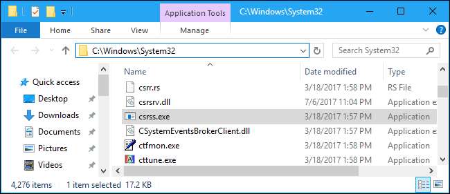 L'Explorateur de fichiers ou l'Explorateur Windows doit s'ouvrir dans le répertoire C: \ Windows \ System32 contenant le fichier csrss.exe.