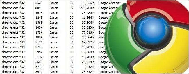 Si vous avez déjà jeté un coup d'œil dans le Gestionnaire des tâches lors de l'exécution de Google Chrome, vous avez peut-être été surpris de voir que le nombre d'entrées chrome.exe dépassait radicalement le nombre de fenêtres Chrome réelles que vous aviez ouvertes. Quel est le problème avec tous ces processus?