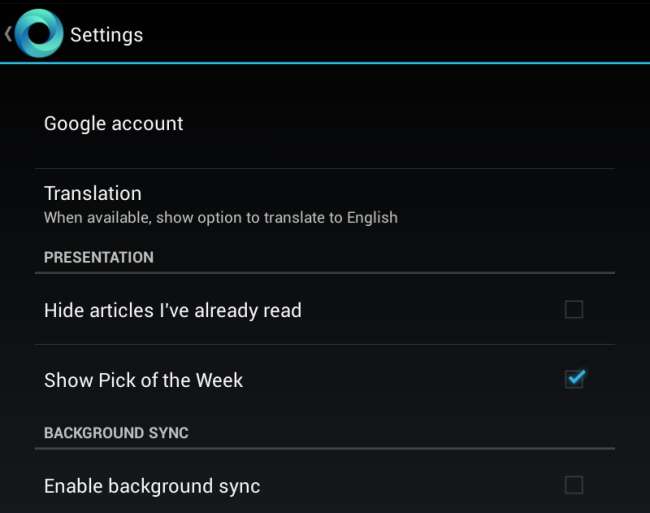 Comme nous l'avons noté dans notre Guide de dépannage de la Nexus 7 , La synchronisation de Google Currents est une cause notoire de retard sur le Nexus 7. Si votre Nexus 7 est trop lent ou ne répond pas correctement aux événements tactiles, ouvrez l'application Currents, accédez à son écran Paramètres et désactivez l'option Synchronisation. Cela empêchera Google Currents de télécharger et d'écrire constamment des données en arrière-plan.