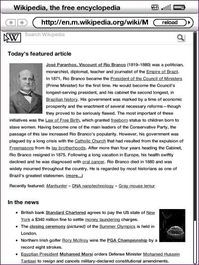 Le Kindle Touch peut accéder à Wikipédia et à la boutique Kindle depuis n'importe où via la 3G, mais doit être connecté au Wi-Fi pour parcourir d'autres sites Web.