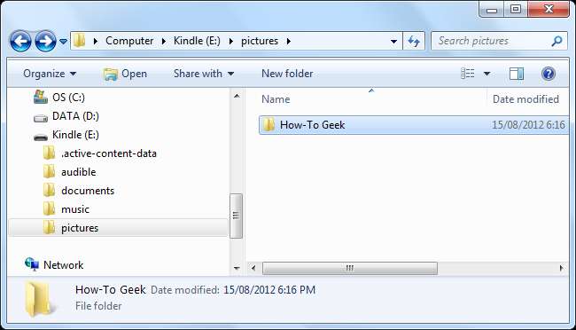Connectez votre Kindle à votre ordinateur et créez un nouveau dossier nommé des photos dans son répertoire racine.