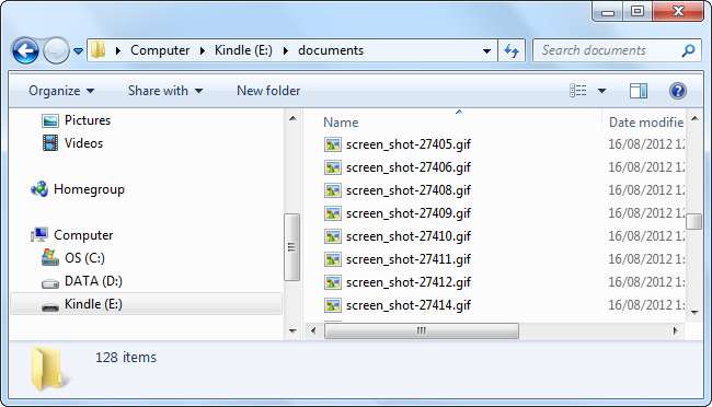 Les captures d'écran sont enregistrées au format GIF et apparaissent dans le documents dossier sur votre Kindle.
