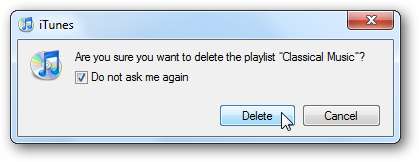 בעת מחיקת רשימת השמעה, תקבל הודעה השואלת אם אתה בטוח. חשבון אל תשאל אותי שוב והמשיך במחיקת רשימות ההשמעה המוגדרות כברירת מחדל.
