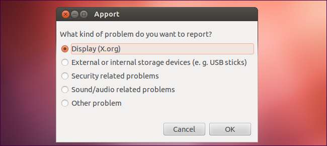 אתה יכול לדווח על באג באמצעות הכלי Apport, המופיע גם באופן אוטומטי כאשר תוכנית קורסת במחשב שלך. השתמש בכלי Apport שנראה כדי להגיש דוחות קריסה שיכולים לעזור למפתחי אובונטו לתקן את הבעיה שאתה חווה.