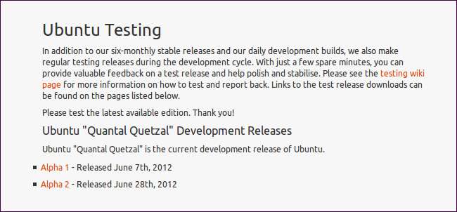 מהדורות פיתוח של אובונטו אינן הדבר היחיד שזקוק לבדיקה. אם אתה רוצה להיות מעורב, בדוק את פעילויות בדיקה דף בוויקי של אובונטו. בנוסף לבדיקת מהדורות פיתוח, אתה יכול לבדוק עדכוני שחרור יציבים ולהיות חלק מקו ההגנה הראשון מפני עדכוני כרכרות שנדחקים לגרסה יציבה של אובונטו - עיין בדף עבור סוגים אחרים של בדיקות שאתה יכול להשתתף בהם.