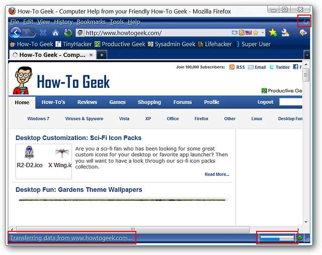 לאחר ריקון המטמון הטענו שוב את דף הבית של HTG. סגנון / מצב ברירת המחדל הוא "סגנון קלאסי" ו"מידע על טעינת דף האינטרנט "יוצג בתוך" שורת המצב "שלך, כפי שמוצג כאן.