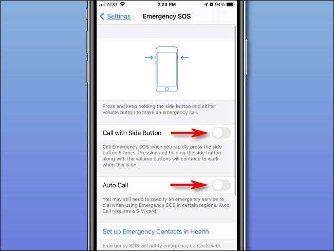 בהגדרות "SOS חירום", לכבות את המתגים ליד "לחצן ההתקשרות Side" ו- "אוטומטי שיחה."