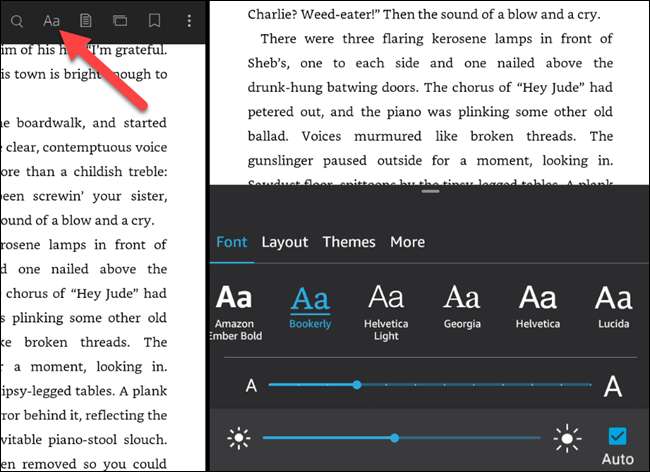 ברגע שאתה נמצא בספר, הקש על מרכז התצוגה כדי להציג את התפריט. בחר את הסמל "AA" כדי להתאים את הטקסט.