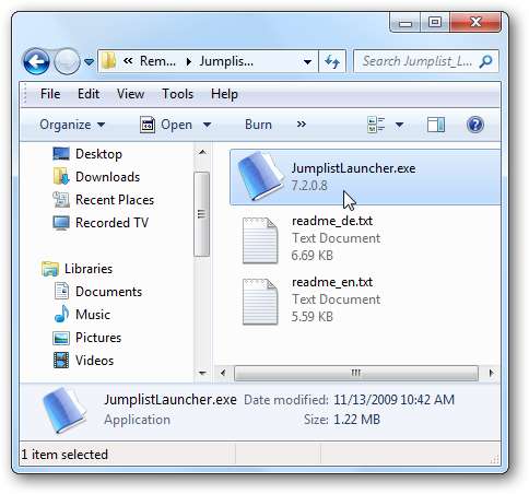 Jumplist Launcher אינו מצריך התקנה ותוכל להריץ אותו ישירות מהכונן הקשיח או מכונן הבזק ולהפעיל את הפעלה.
