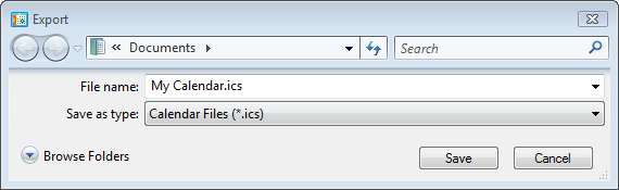הדבר הראשון שתרצה לעשות הוא לוודא שכל הפגישות, הפגישות והפונקציות הידועות שלך נכנסות ללוח השנה. עכשיו כשאתה מוכן לשמור לחץ על ייצוא קבצים. זה יביא אותך לתיבת הדו-שיח ייצוא. פשוט בחר מיקום לאחסון הקובץ * .ics. תקן ICS הוא תקן טקסט שפותח על ידי אפל לייבוא קל של נתוני טקסט בלוח השנה.