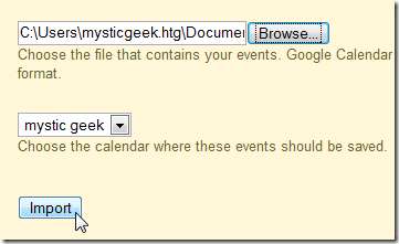 כעת אנו יכולים לייבא קובץ זה לסוגים רבים של יישומי לוח שנה מקוונים כגון יאהו או יומן Google. כדוגמה אני אראה לך מייבא את שמירת החלון 'ליומן Google.