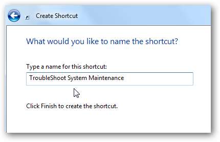 בשלב הבא תן שם לקיצור הדרך משהו שיעזור לך לזכור למה הוא מיועד. כאן אנו משתמשים פתרון בעיות בתחזוקת המערכת .