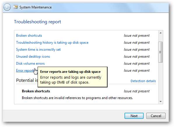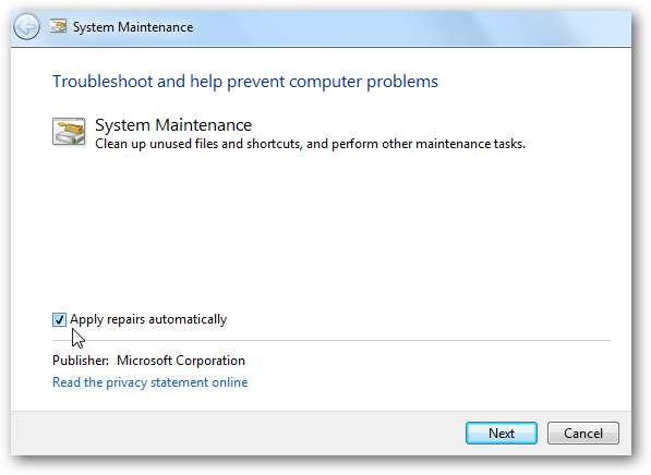 לחץ פעמיים על הסמל והוא יביא אותך ישירות לתחזוקת המערכת ותוכל להתחיל להשתמש באשף כדי לחפש בעיות, אם ברצונך לסמן את התיבה כדי להחיל תיקונים באופן אוטומטי .