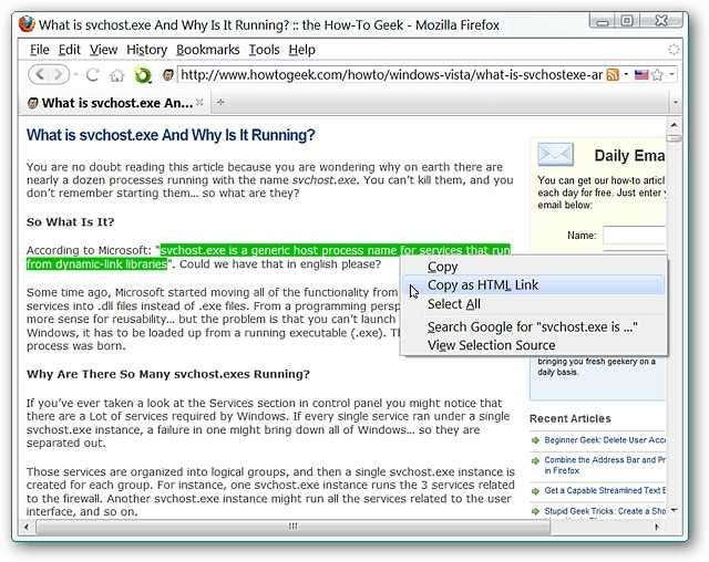 לאחר התקנת התוסף אתה מוכן לצאת לדרך. לדוגמא ראשונה החלטנו להעתיק את הכותרת של מאמר זה על ידי הדגשת הטקסט, לחיצה ימנית ובחירה באפשרות "העתק כקישור HTML".