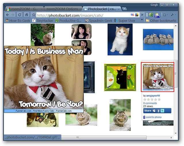 סיומת zoomZOOM עשויה לעשות רק דבר אחד אבל היא עושה את זה טוב מאוד ... ומאפשרת לכם להציג גרסאות מוגדלות יפה של התמונות באתרי התמונות המועדפים עליכם.