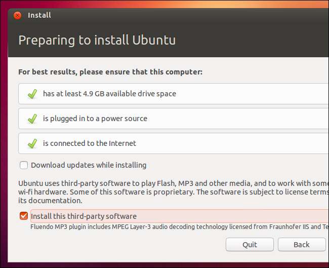 אם אתה רוצה את ה- codec עצמם, עם זאת, עדיין לא קשה להשיג אותם ברוב הפצות לינוקס. אובונטו שואלת אותך אם ברצונך לכלול אותם במהלך ההתקנה הראשונית שלה. בהפצות לינוקס אחרות, ייתכן שתתבקש להתקין אותן בכמה לחיצות. אם ההפצה שלך לא עושה את זה, חיפוש פשוט באינטרנט צריך להעלות הוראות שינחו אותך בתהליך בהפצת הלינוקס שבחרת.