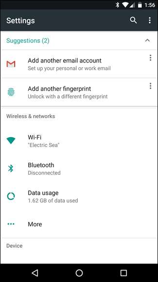 תפריט ההגדרות באנדרואיד תמיד היה מקום פשוט יחסית, כשהכל מפורק לרשימה קלה לשימוש. אחת התוספות המעודנות יותר כאן היא אפשרות "הצעות" חדשה בראש התפריט - דברים שטרם הגדרתם שגוגל חושבת שאולי תרצו. אני אוהב את זה.
