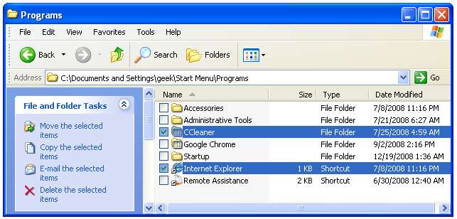 ואז תבחין ששתי תיבות הסימון שלמעלה נבחרות כעת, ותוכל להשתמש בהן בפונקציות קבצים רגילות של Windows (כמו העתק או העבר).
