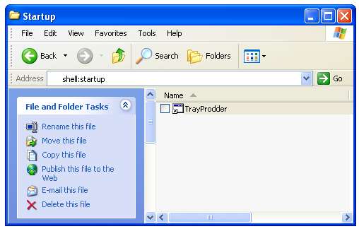 פתח חלון סייר והקלד מעטפת: הפעל בשורת הכתובת, ואז צור קיצור דרך להפעלת ה- TrayProdder בתיקיה זו.