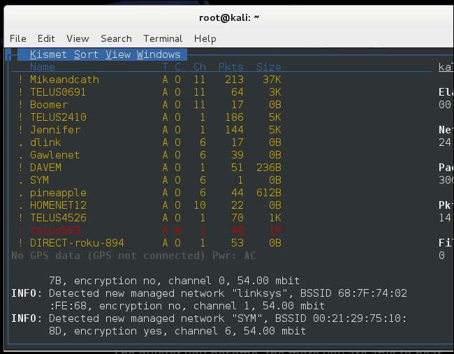 אם אתה רוצה לראות את הכלים הספציפיים שתוקף ישתמש בהם, להוריד ולהפעיל קאלי לינוקס . קאלי היא היורשת של BackTrack, שאולי שמעתם עליה. Aircrack-ng, Kismet, Wireshark, Reaver וכלים אחרים לחדירת רשת מותקנים מראש ומוכנים לשימוש. כלים אלה עשויים לקחת קצת ידע (או גוגל) לשימוש בפועל, כמובן.