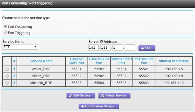 כשתסיים לשנות הקצאות יציאה בכל מחשבי המחשב שלך, תוכל להיכנס לנתב שלך ולהתחיל להעביר כל אחת מהיציאות למחשב המשויך. אם הנתב שלך מאפשר זאת, עליך להזין גם את שם המחשב רק כדי לשמור על סדר. אתה תמיד יכול להשתמש בערך "יישום" שרוב הנתבים מכילים כדי לעקוב אחר איזה יישום מוקצה ליציאה. פשוט הזן את שם המחשב ואחריו משהו כמו "_RDP" כדי לשמור על ישרות.