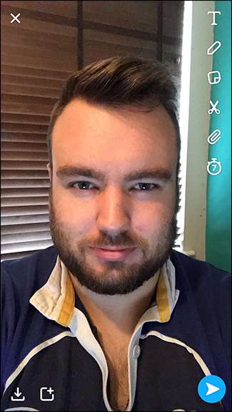 פתח את Snapchat וצלם תמונה של Snap כרגיל. תפאורות פועלות רק עם תמונות לעת עתה.