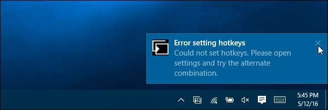 כברירת מחדל, VirtualDesktopManager משתמש במקום זאת ב- Ctrl + Alt + Left ו- Ctrl + Alt + Right. עם זאת, אם יש לך שבב של אינטל במחשב האישי שלך, יש אפשרות טובה שזה לא יעבוד, מכיוון שמקשי קיצור זה מוקצים לתוכנית שירות של אינטל. VirtualDesktopManager יידע אותך אם לא ניתן להגדיר את מקש הקישור המוגדר כברירת מחדל שלהם עם התראה שתוצג בעת הפעלת VirtualDesktopManager. יש מקש חם חלופי ונראה לך כיצד לעבור לזה.