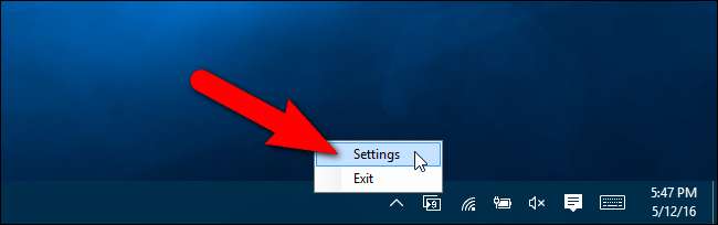 כדי לשנות את מקש הקיצור המשמש ב- VirtualDesktopManager, לחץ באמצעות לחצן העכבר הימני על הסמל במגש המערכת או בשורת המשימות ובחר "הגדרות" מתפריט הקופץ.