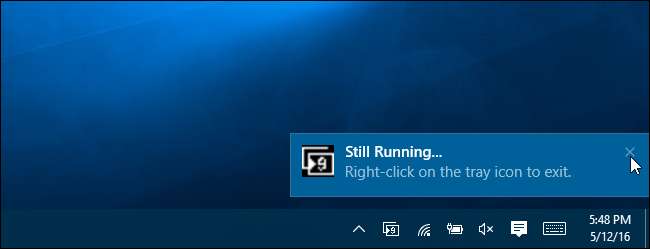 מופיעה התראה המודיעה לך ש- VirtualDesktopManager עדיין פועל וכיצד לצאת מהתוכנית, אם תבחר בכך.