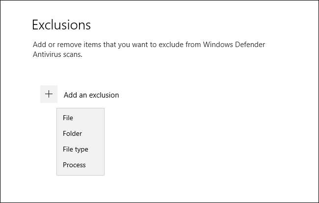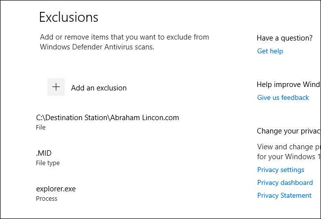 אַזהָרָה: היזהר במה שאתה לא כולל. Windows Defender לא יסרוק את הקבצים והספריות שלא נכללו עבור תוכנות זדוניות. לא היית רוצה להחריג הכל בתיקיית ההורדות שלך, למשל!