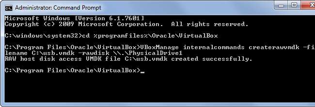VBoxManage פקודות פנימיות יצירהawmdk -קובץ שם C: \ usb.vmdk -rawdisk \\. \ PhysicalDrive #