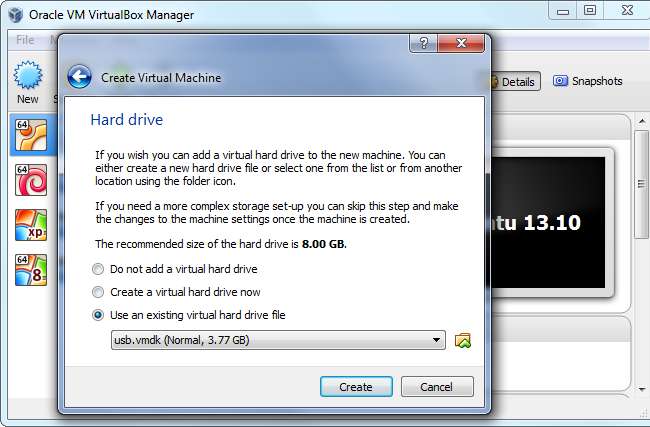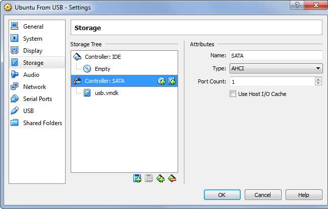 שים לב שעל התקן ה- USB להיות הדיסק הקשיח הראשון במחשב הווירטואלי שלך, או ש- VirtualBox לא יאתחל ממנו. במילים אחרות, אינך יכול פשוט ליצור מכונה וירטואלית סטנדרטית ולצרף את מכשיר ה- USB מאוחר יותר.