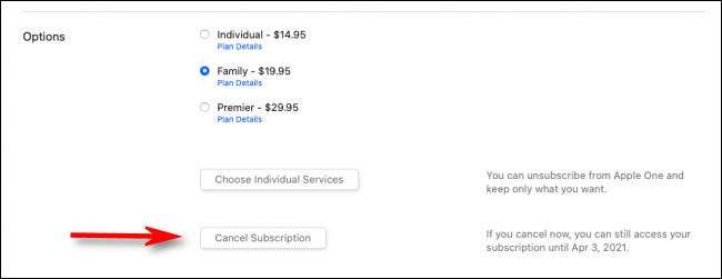עֵצָה: לחלופין, ניתן להקיש "לבחור שירותי פרט" כאן רק לבטל חלקי החבילה אחת האפל שלך. אם אתה עושה את זה, את מנוי יהפכו לאחד-על-א-זמן במקום להיות ארוז תחת התווית "תפוח אחד".