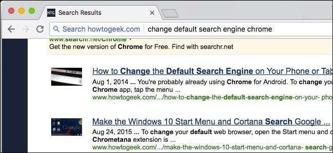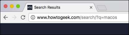 למשל, נניח שאנחנו רוצים להוסיף חיפוש How-To Geek. התחל על ידי חיפוש באתר זה, ולאחר מכן העתק את כתובת האתר של החיפוש של How-To Geek ישירות מסרגל הכתובות.
