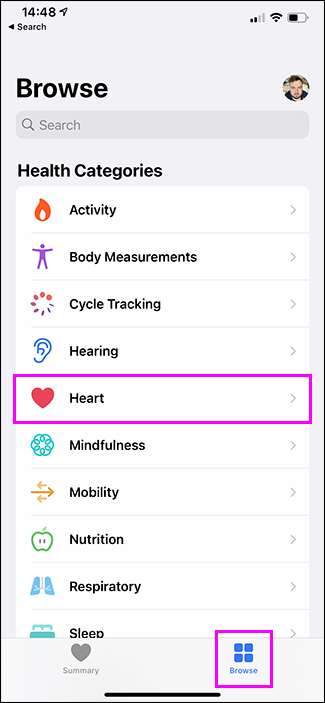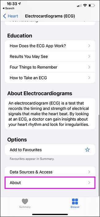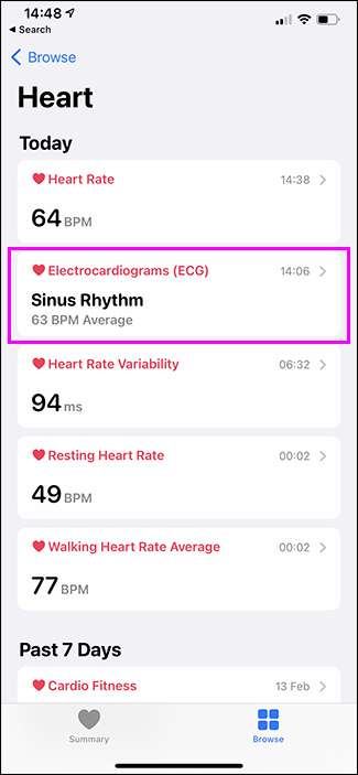 אתה יכול גם לבדוק את זה באמצעות iPhone שלך. פתח את האפליקציה לבריאות ועבור אל "עיון" & GT; "לב" & GT; "Electrocardiograms (ECG)."