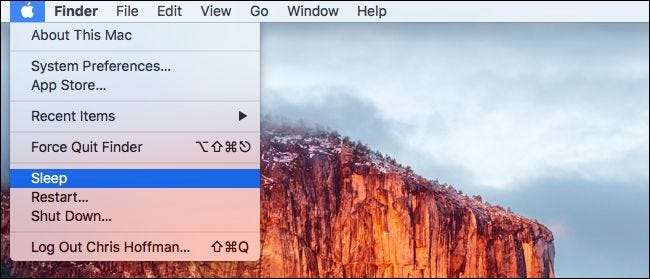 כדי שה- Mac שלך יעבור למצב המתנה, תוכל לסגור את המכסה, ללחוץ על כפתור ההפעלה או לבחור באפשרות "שינה" בתפריט Apple.