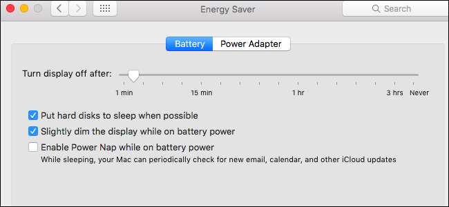 כדי לשלוט בדיוק כמה זמן ה- Mac שלך ממתין לפני כניסה למצב שינה, עבור אל העדפות מערכת> חיסכון באנרגיה והתאם את המחוון "כבה את התצוגה לאחר". הגדרה זו שולטת כאשר ה- Mac שלך עובר למצב שינה, והוא עובר למצב המתנה (או מצב שינה) מספר מסוים של דקות לאחר מכן.