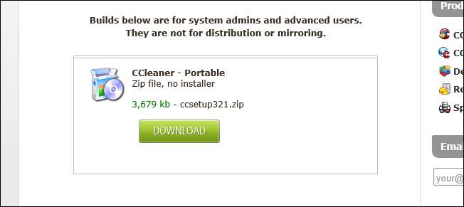 עבור אל אתר פירפורם ותפוס עותק של הגרסה הניידת של CCleaner.