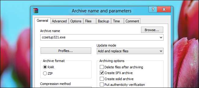 הדבר הראשון שעלינו לעשות הוא לומר ל- WinRAR שאנו בונים ארכיון לחילוץ עצמי.
