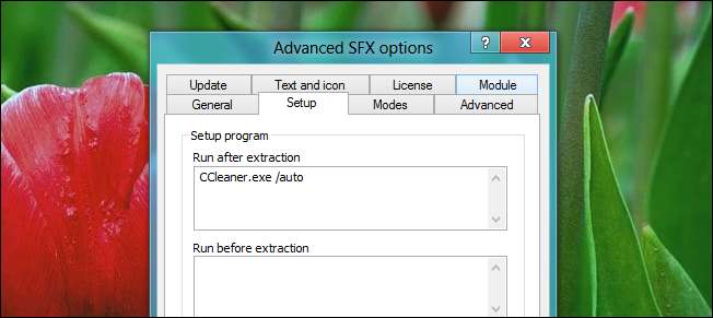 כעת תרצה לעבור לכרטיסיה הגדרות, כאן עלינו לציין מה אנו רוצים להפעיל לאחר חילוץ הארכיון. אנו הולכים לבחור להשתמש בינארי CCleaner מכיוון שיש לנו גם מחשבי x86 וגם x64 ברשת, אולם אם יש לך רק מחשבי x64, ייתכן שתרצה להשתמש בינארי CCleaner64, אך מה שתבחר אל תשכח לכלול את / מתג אוטומטי.