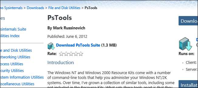 כעת, כאשר אנו מסוגלים לבצע את CCleaner באופן אוטומטי אנו זקוקים לשיטה להעתקתו למחשב היעד וכן לביצועו. למזלנו PSExec עושה את שני הדברים האלה. אז גש אל אתר Sysinternals ותפוס עותק של PSTools.