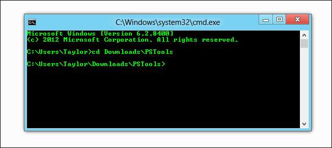 לאחר הורדת PSTools וחילצת אותו, הפעל את שורת הפקודה ואתר את הפעלת PSExec.