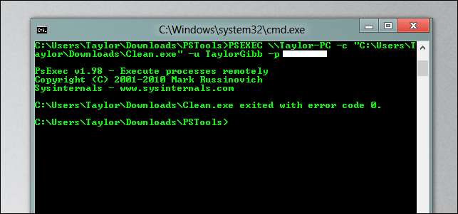 PSEXEC \\ Taylor-PC -c "C: \ Users \ Taylor \ Downloads \ Clean.exe" -u TaylorGibb –p סיסמה