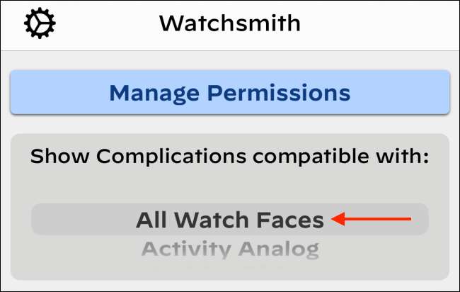 ראשית, להוריד, ואת פתוחה Watchsmith אפליקציה ב- iPhone שלכם. כאן, לוודא את "כל עיצובים לשעון" נבחרה מלמעלה. כעת ניתן לעיין בכול אפשרויות הסיבוך הזמינות.