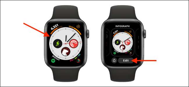 עכשיו זה הזמן לעבור שעונים אפל שלך. הוספה או החלפה על לוח השעון Infograph והקש והחזק את פני השעון. הנה, בחר בלחצן "ערוך" כדי להיכנס למסך ההתאמה האישי של השעון.