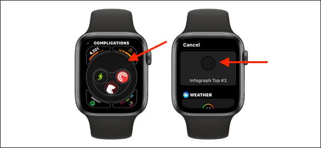 בדוגמה זו, אנחנו הולכים להשתמש סיבוך "Infograph למעלה" כדי ליצור סיבוך יחידה המציגה הן את התאריך ואת השעה. אם אתה רוצה, אתה יכול להשתמש במעין הסיבוך שונה גם כן.