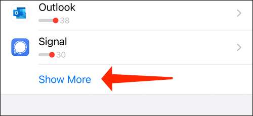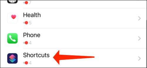 גלול למטה אל הקטע התראות ברז "הצג עוד". ודא כי הקיצורים מופיעים בין רשימת האפליקציות כאן.
