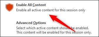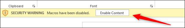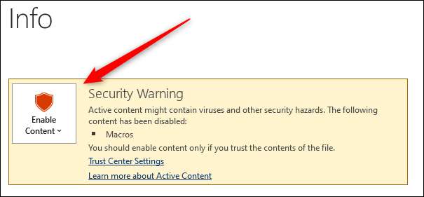 פקודות מאקרו מושבת כברירת מחדל, אך תוכל בקלות להפעיל אותם. אם תפתח קובץ המכיל מאקרו, Microsoft Office ישלח אזהרת אבטחה דרך סרגל ההודעה בחלק העליון של המסמך. כדי להפעיל את פקודות מאקרו בקובץ, לחץ על "הפעל תוכן" בבר ההודעה.