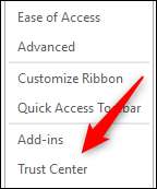 בתפריט "אפשרויות" שמופיע ("אפשרויות Word" בדוגמה שלנו), לחץ על "מרכז אמון".